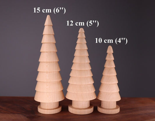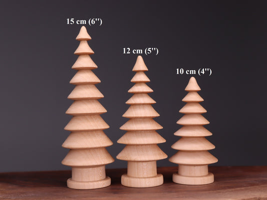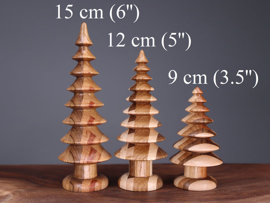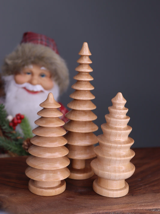 Hand turned wooden Christmas trees set